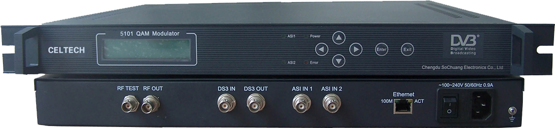 胜天工CEL-5101 QAM调制器,是有线数字电视前端的主要设备之一,接收来自编码器、复用器、DVB网关、加扰器、视频服务器等设备的DVB传输码流,进行RS编码,卷积交织和QAM调制等信道处理,射频输出。采用新一代集成电路BCM3034,低功耗,高指标。