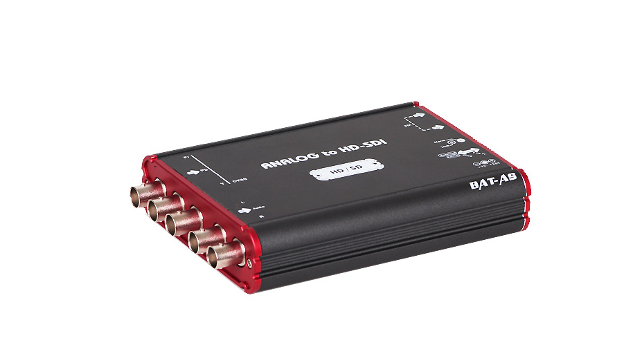 KEY FEATURES Auto detection mode (HD/SD) Component (YPbPr) or Composite (CVBS or S-Video) input HD/SD-SDI output x1 [BNC 75ohm] Supports analog stereo audio iutput (Left RCA : White, Right RCA : Red) Selectable luminance range(0~255/16~235) by DIP switch Selectable HD/SD color space conversion by DIP switch
