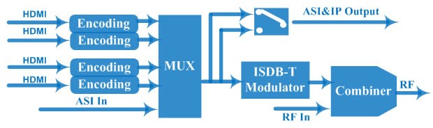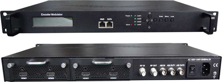 集编码与调制功能于一体 MPEG-2、MPEG-4/AVC H.264高清视频编码 1个子板,2路HDMI或者SDI可选,可插2个子板,扩展到4路HDMI/SDI可选。 1路ASI输入; 1路RF输出; IP输出4路SPTS,UDP单播/组播。 DVB-C,DVB-T,ATSC,ISDB-T,DTMB可选,RF输出 支持LCN (Logical Channel Number) LCD 显示, Web网管远程控制和固件更新